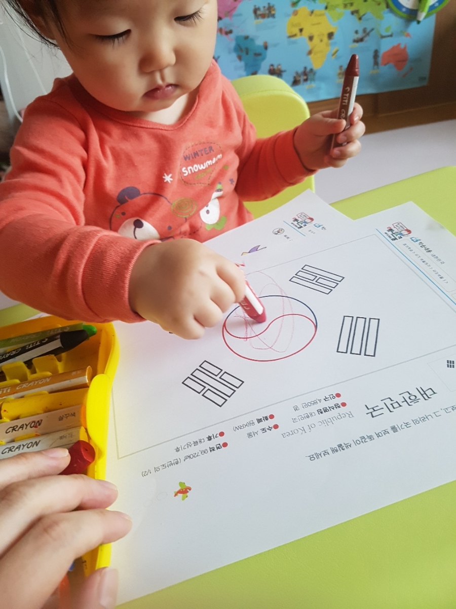 태극기를 색칠해보라고 꼬마에게 줘봅니다ㅋ