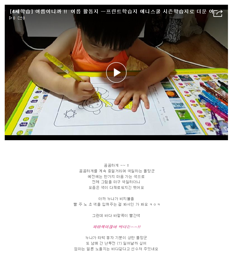 제목 [4세학습] 여름이니까 !! 여름 활동지 ㅡ프린트학습지 애니스쿨 시즌학습지로 더운 여름을 즐겨요