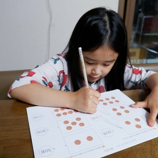 10원짜리 셈은 쉽게하고 50원짜리는 거의 엄마와 함께 했어요.
