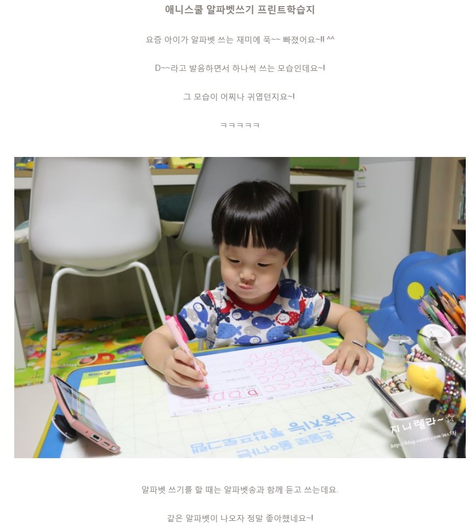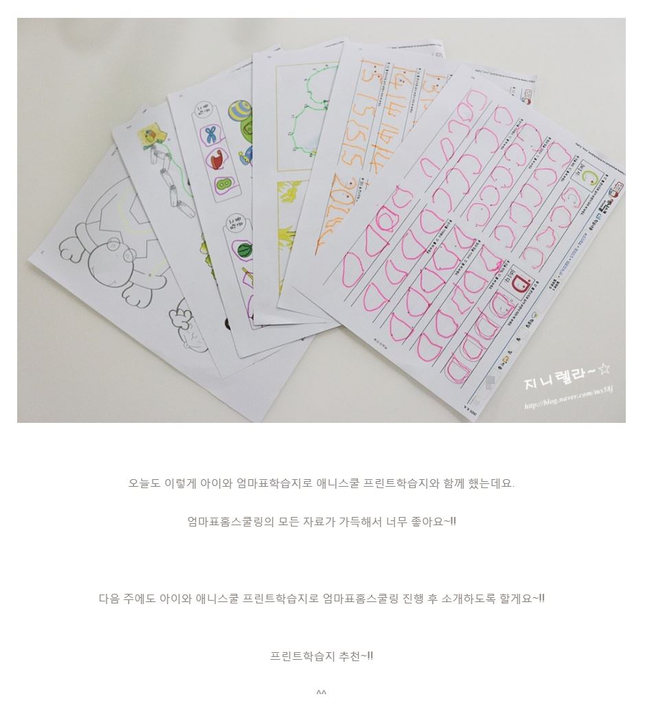 제목 엄마표학습지 애니스쿨 프린트학습지로 해요~! :)