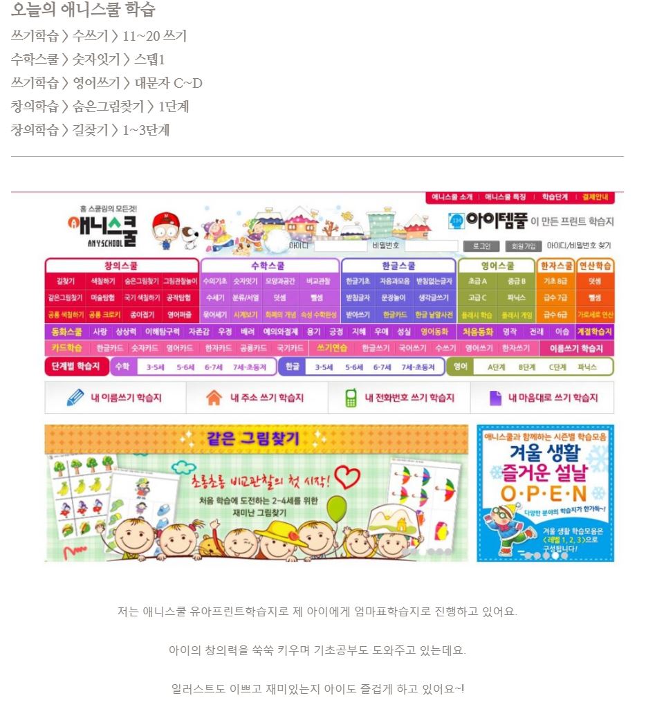 프린트학습지 대표 – 애니스쿨