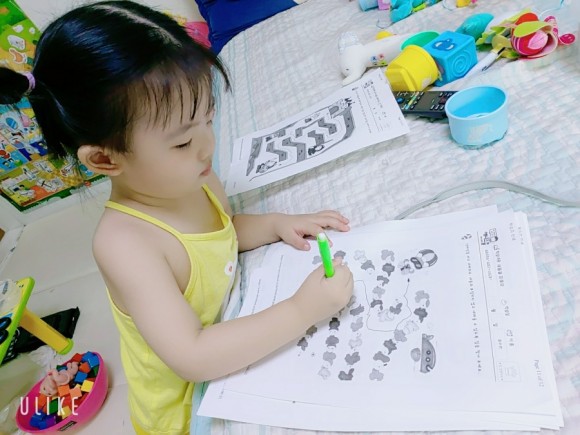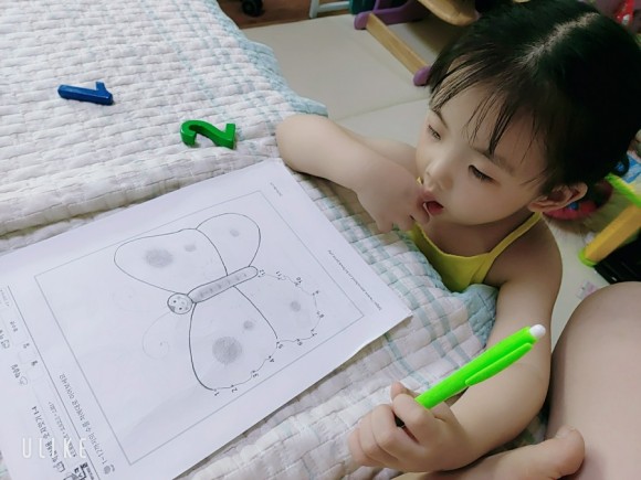 엄마가 1과 2를 연결해요 이번에는 2에서 3 그리고 3에서 4까지
