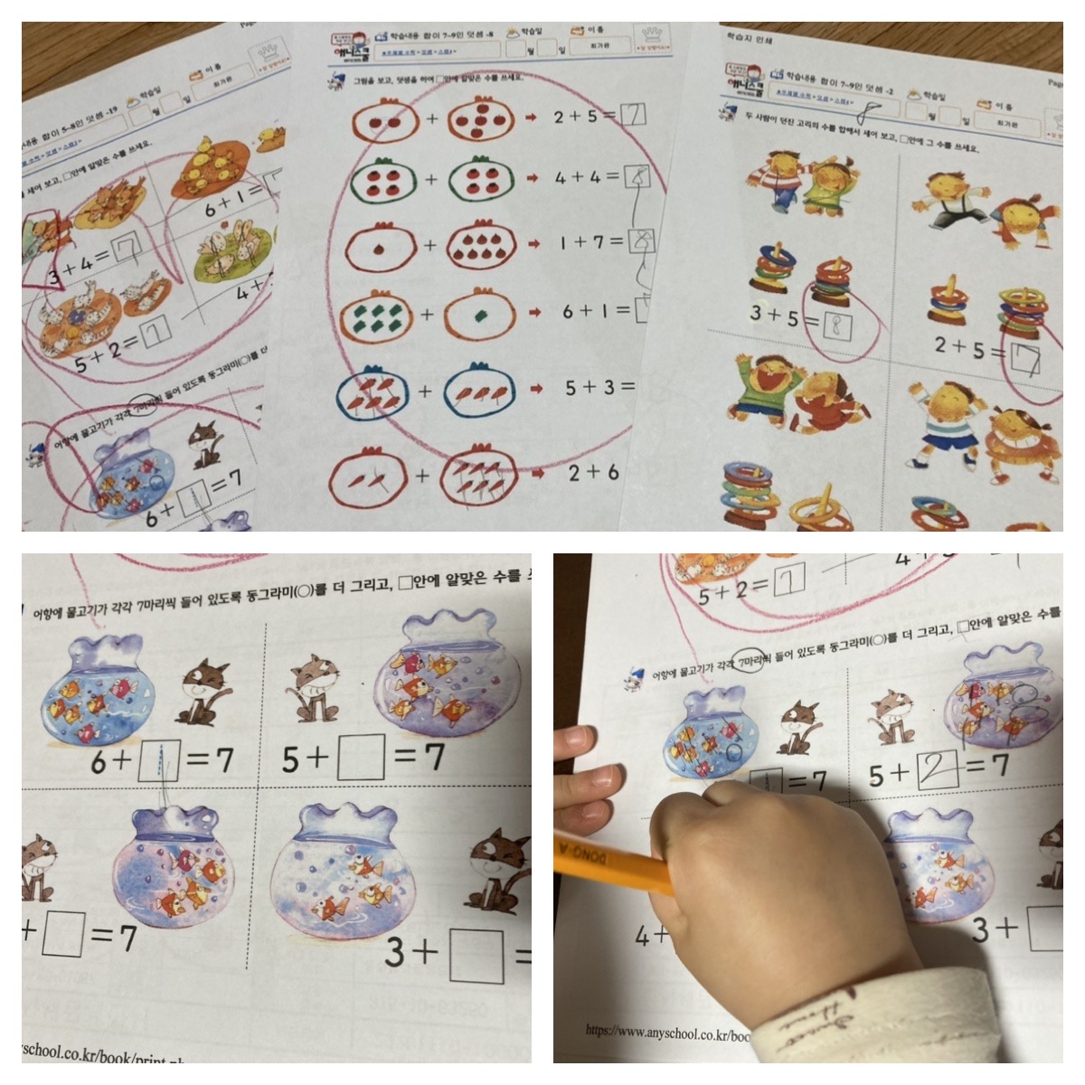 수학 학습에 들어가요. 요즘 5~8까지의 덧셈을 하고 있는데요.