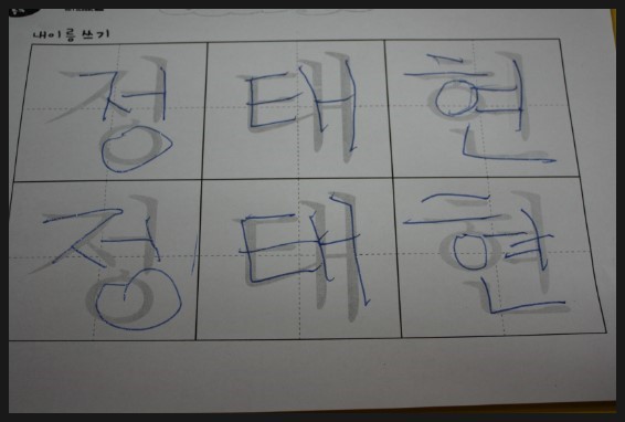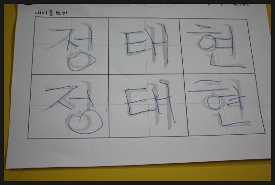 애니스쿨 학습지중 이름쓰기 학습지를 해보았어요.