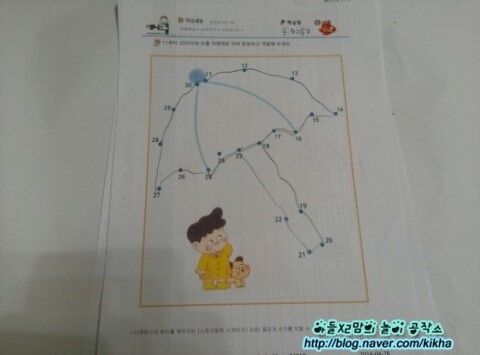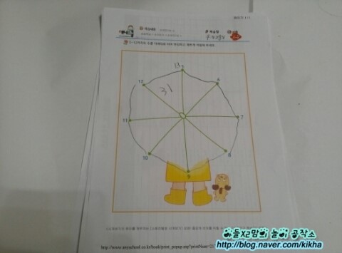 오늘 인쇄한 워크시트는 숫자를 다 이으면 우산 모양이 됩니다 ^^