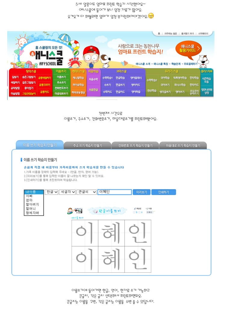 프린트학습지 대표 – 애니스쿨