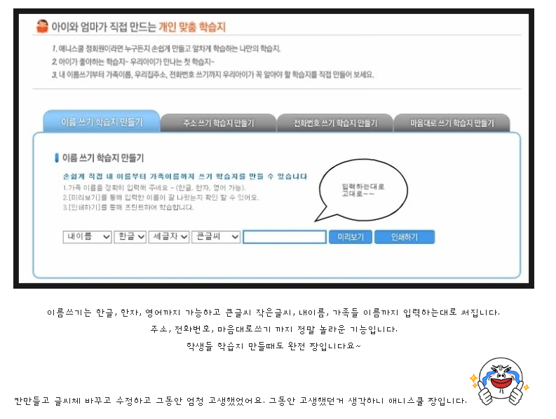 프린트학습지 대표 – 애니스쿨