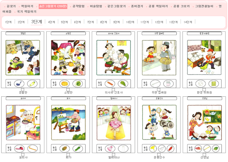 그림 관찰놀이를 클릭해서 들어가면 창의표현으로 숨은그림 찾기코너가 있습니다