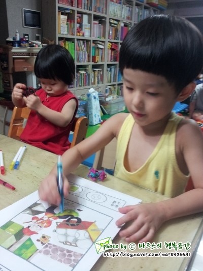 본인이 찾은 그림을 동그라미 치는 아들입니다