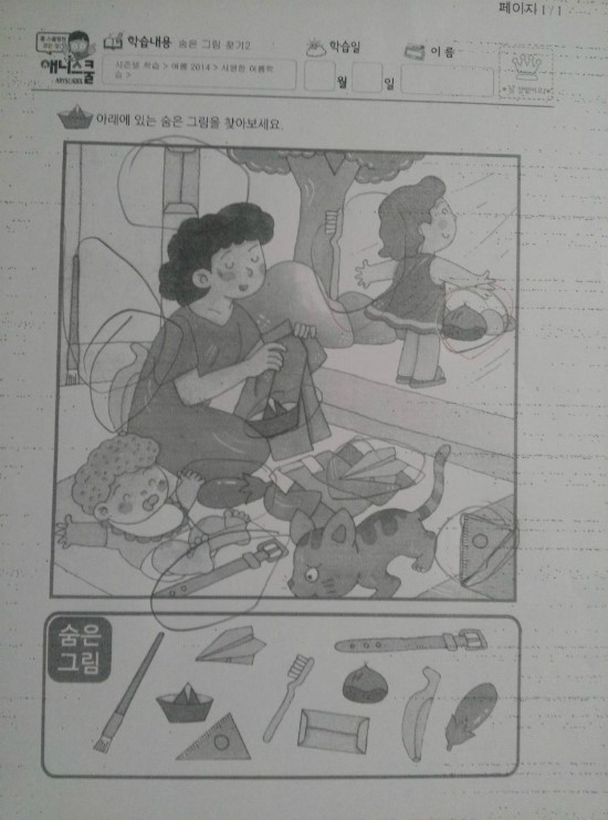 >다양한 숨은 그림 찾기 속으로 푹 빠져드는 아이..
