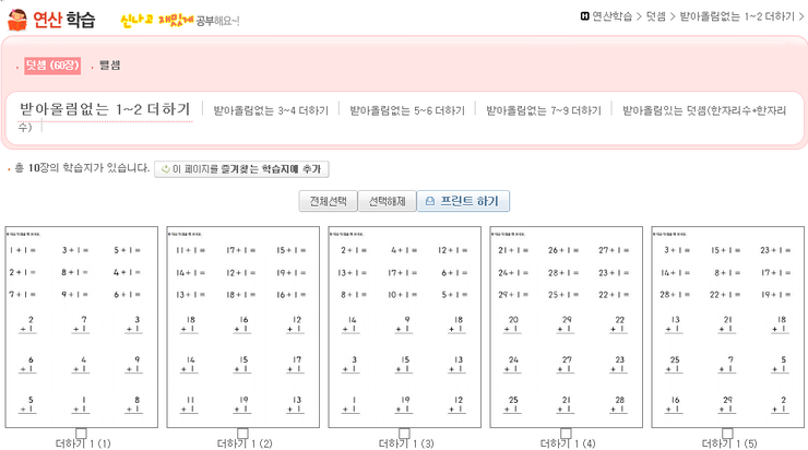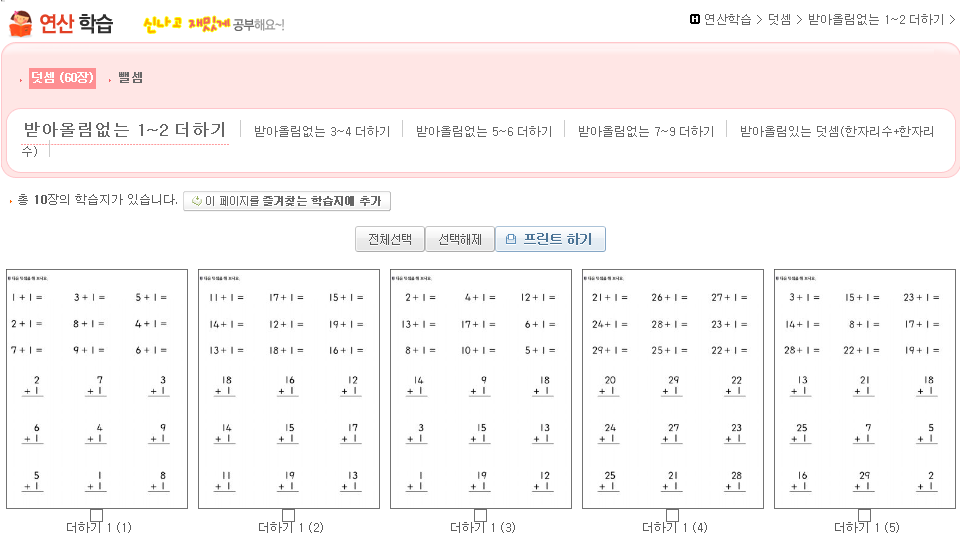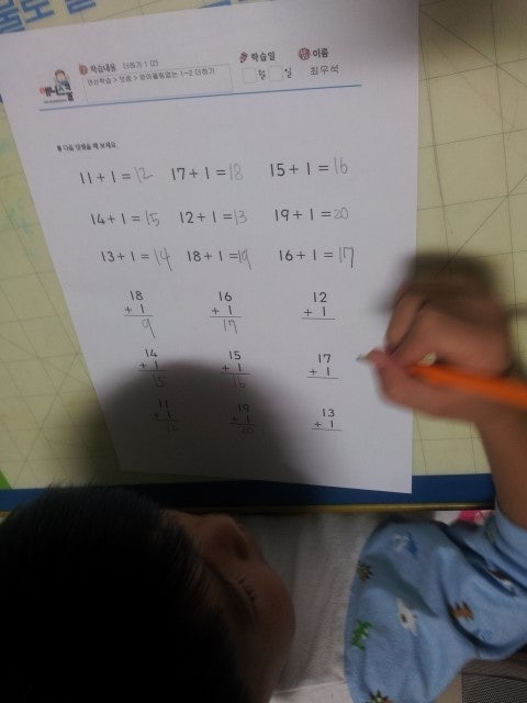 받아올림이 없는 1~2더하기, 3~4더하기....받아올림이 있는 덧셈까지...
