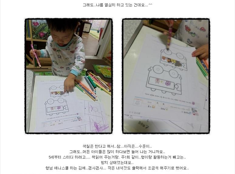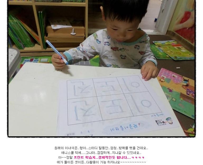 도진이~ 까꿍!!우리 4살 딸램이랑 같이 공부하면 정말 귀여울것 같은데!! ^^형아 공부하는거 보다보면 둘쨰는 금방 한다더라구요.앞으로의 모습이 기대되네요! ㅎㅎ