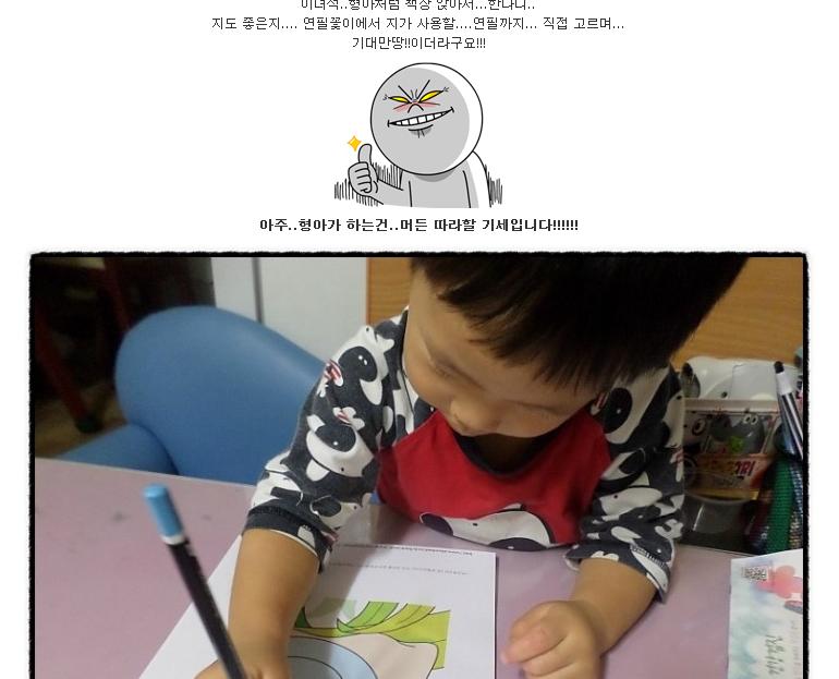 엉덩이 들썩하는게 여기까지 전해져요! ㅋㅋㅋ그치만 왤케 귀여울까요! ㅎㅎㅎㅎ옆에서 볼떈 그리 하고싶어했는데 정작 본인이 하니깐 정말 힘들었나봐요 ㅋㅋㅋ