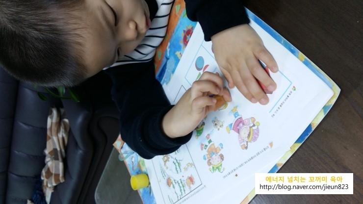 잠깐 꺼미를 살피는 사이, 기다리지 못하고 혼자서 숫자에다 색치를 하고 있었네요