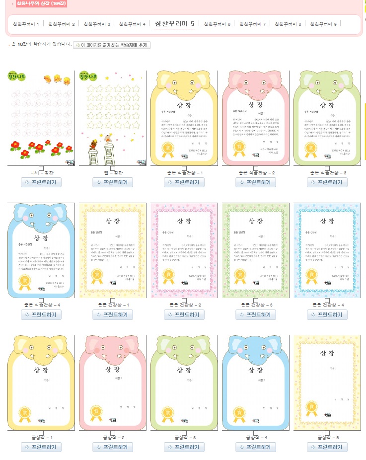 칭찬판외에도 다양한 상장을 프린트할수있는데