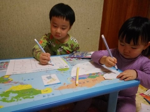 열심히 글씨를 따라서 쓰더라고요...