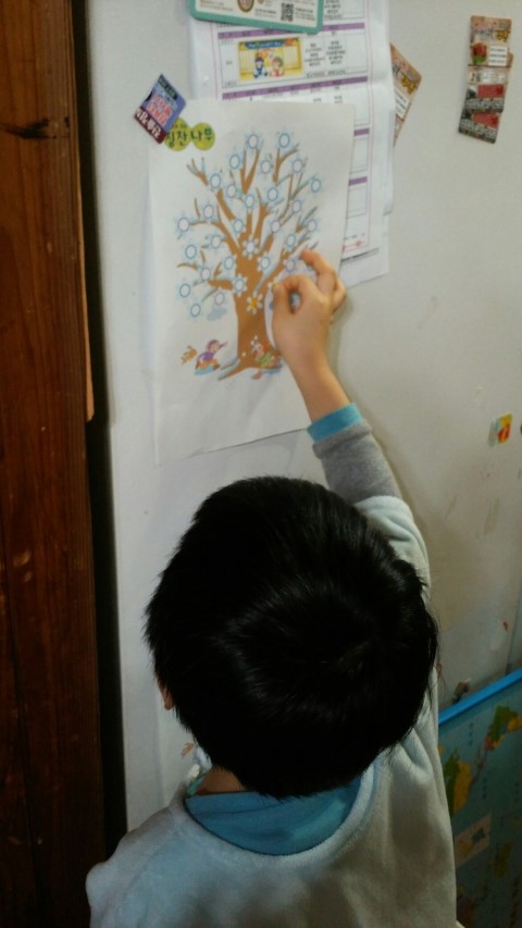 따라쟁이도 붙여야 한다며... 칭찬스티커판을 만들어 주었어요...