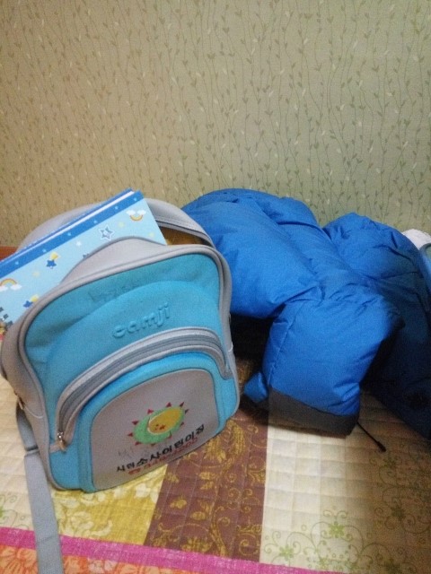여행 가는 놀이를 하고 있던 아들 자신이 입고있던 잠바와 가방을 옆에 놓아두더라고요..