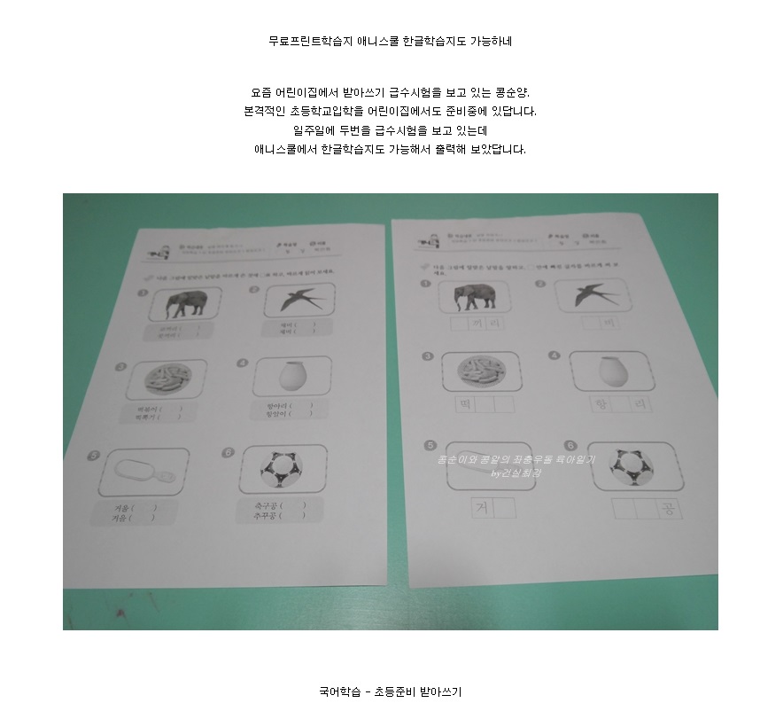 제목 무료프린트학습지 애니스쿨 한글학습지도 가능하네