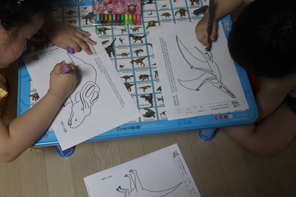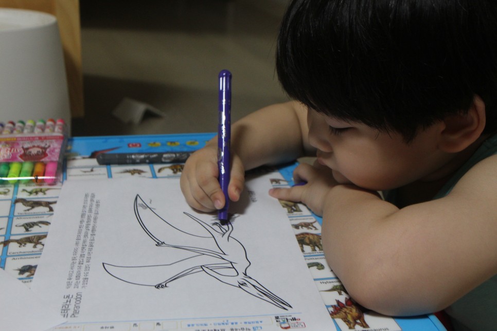 컬러링연습도 한창이지요. 백악기공룡 종류만으로도 정말 많더라구요.