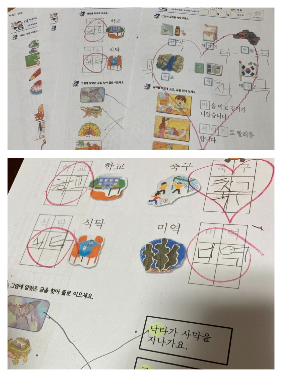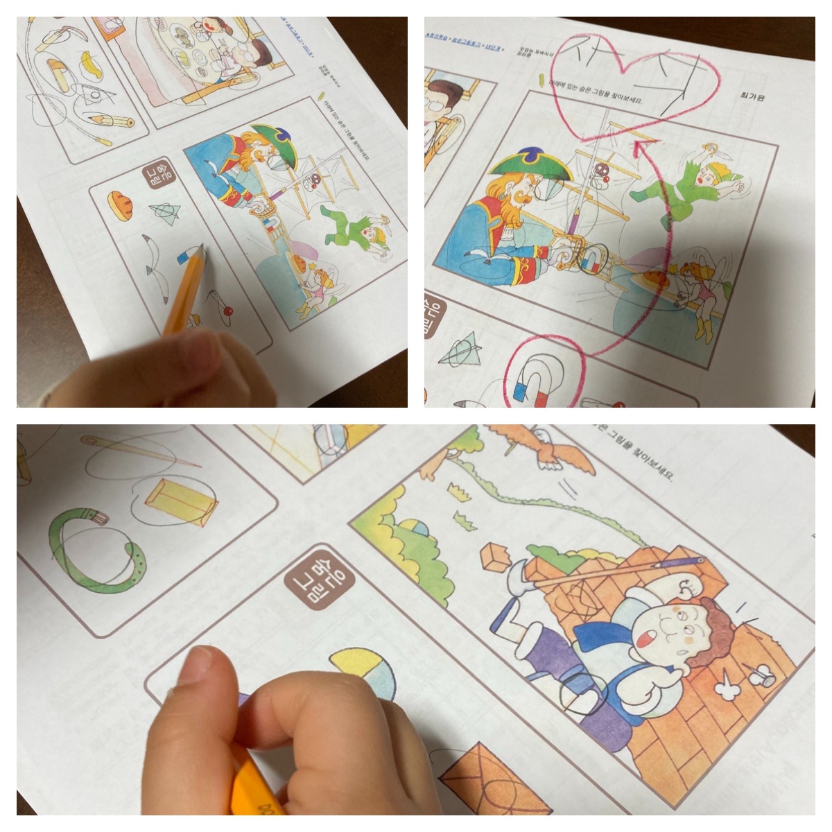 일주일에 두 세번은 숨은 그림 찾기를 하고 있어요. 숨은 그림 찾기만 하면 아쉬우니까 한글 쓰기 연습도 하고 있어요. 창의력도 키우고 한글학습도 하고 일석이조랍니다.