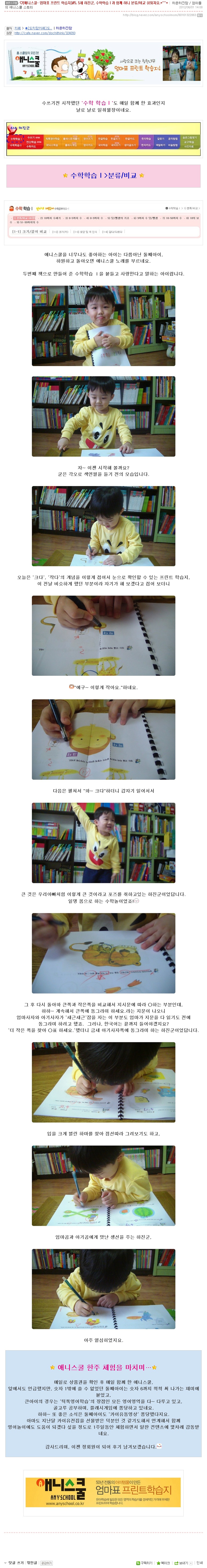 제목 ♡[애니스쿨- 엄마표 프린트 학습지]#5. 5세 하진군, 수학학습Ⅰ과 함께 하니 분류/비교 쉬워져요.*^^*
