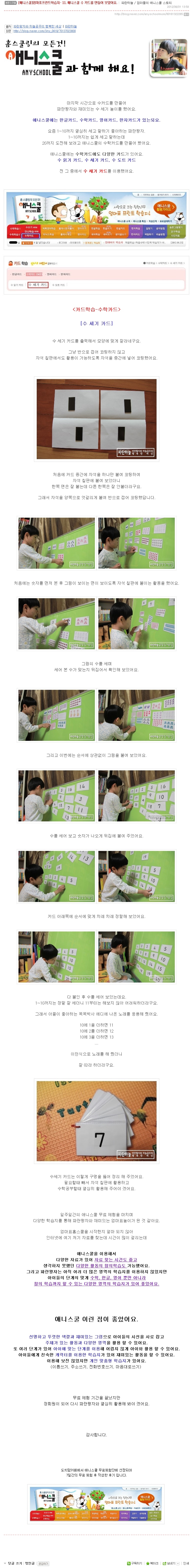 제목 [애니스쿨]엄마표프린트 학습지- 11. 애니스쿨 수 카드를 만들어 보았어요.