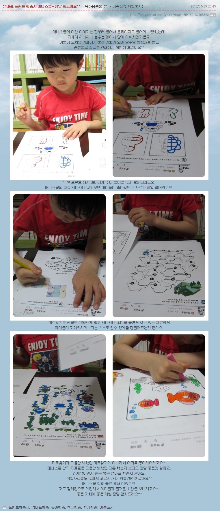 제목 엄마표 프린트 학습지 애니스쿨~ 정말 최고에요^^
