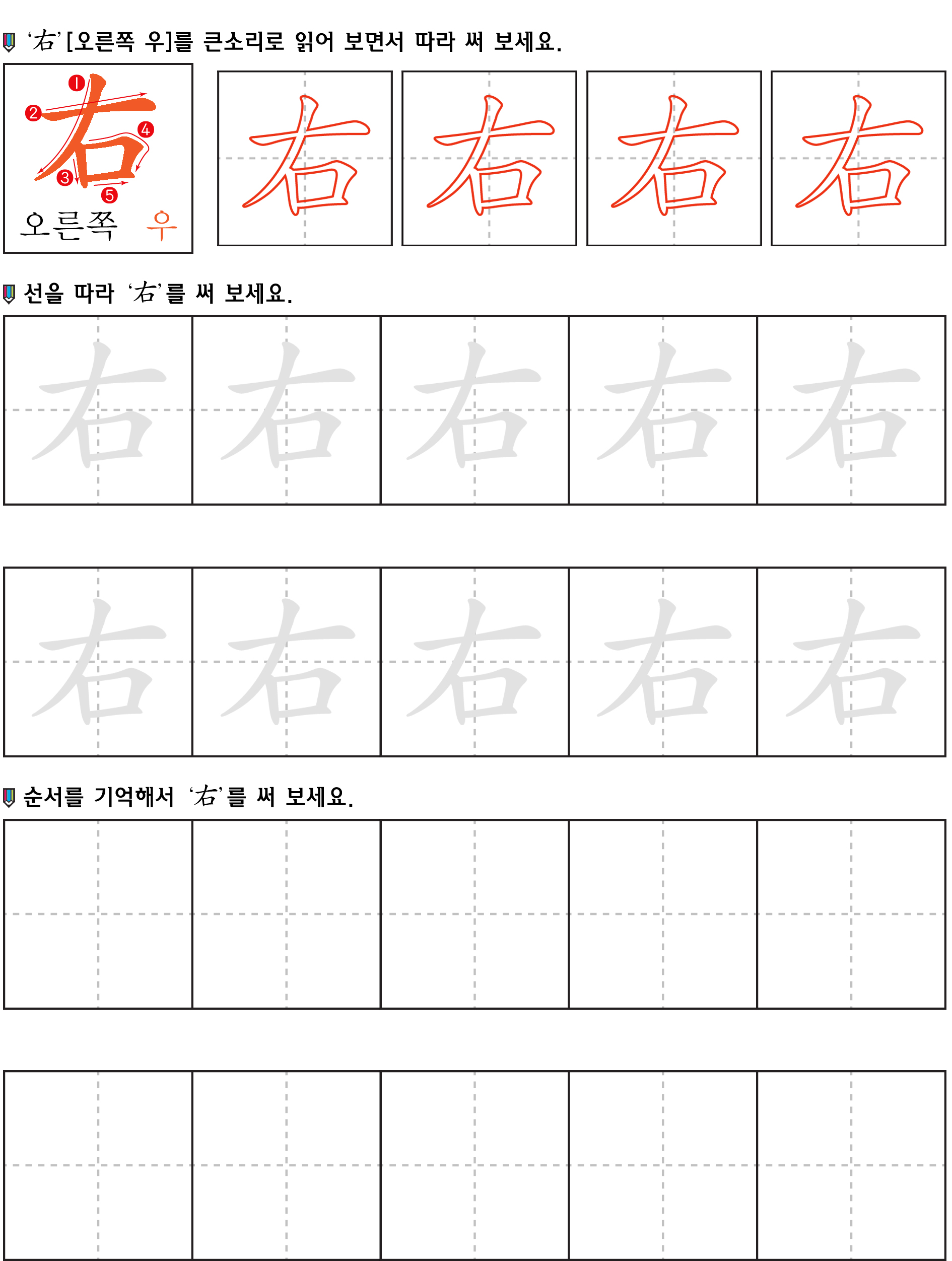 오른쪽 우(右) 익히기