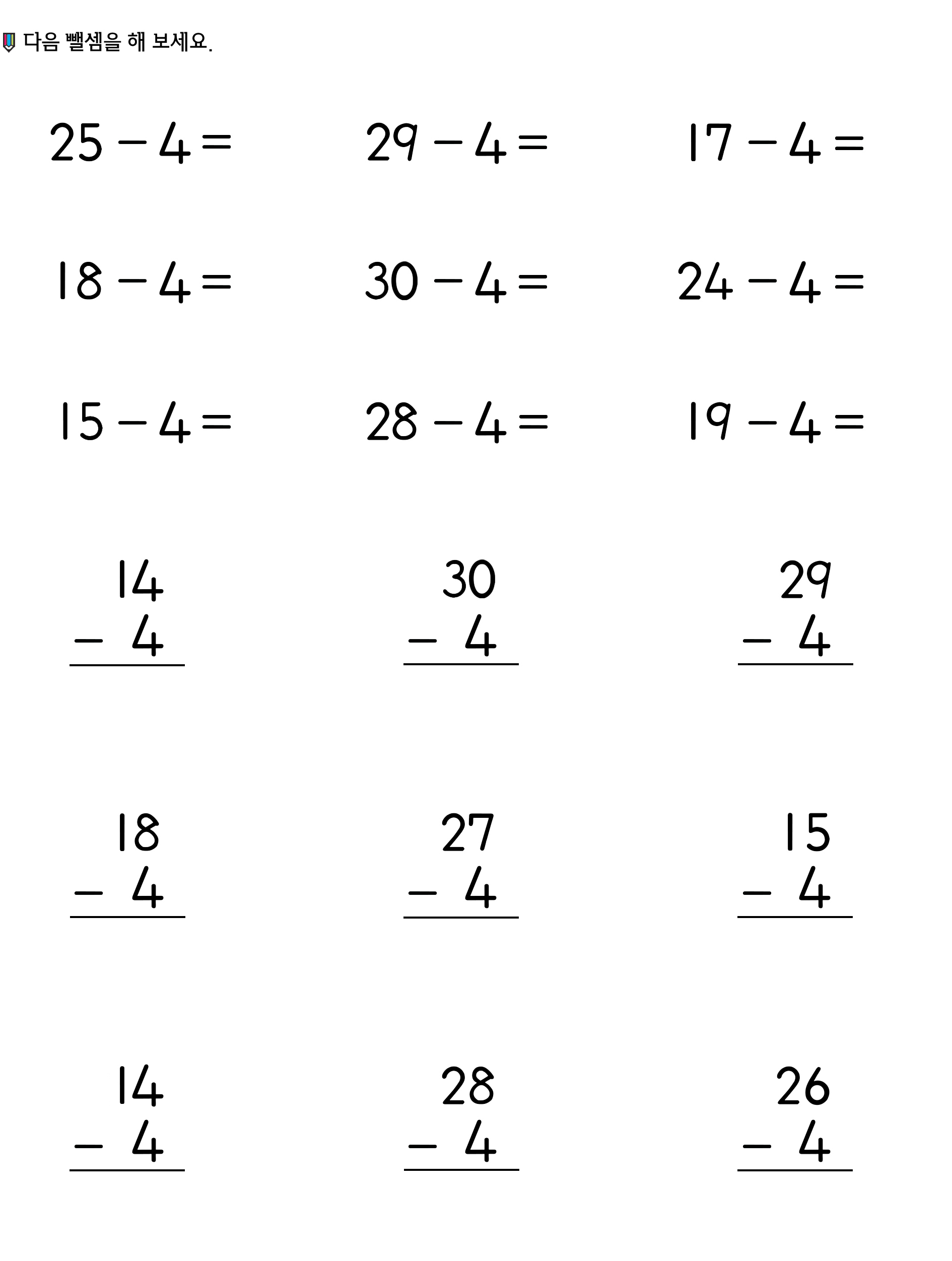 받아내림 없는 빼기 3~4
