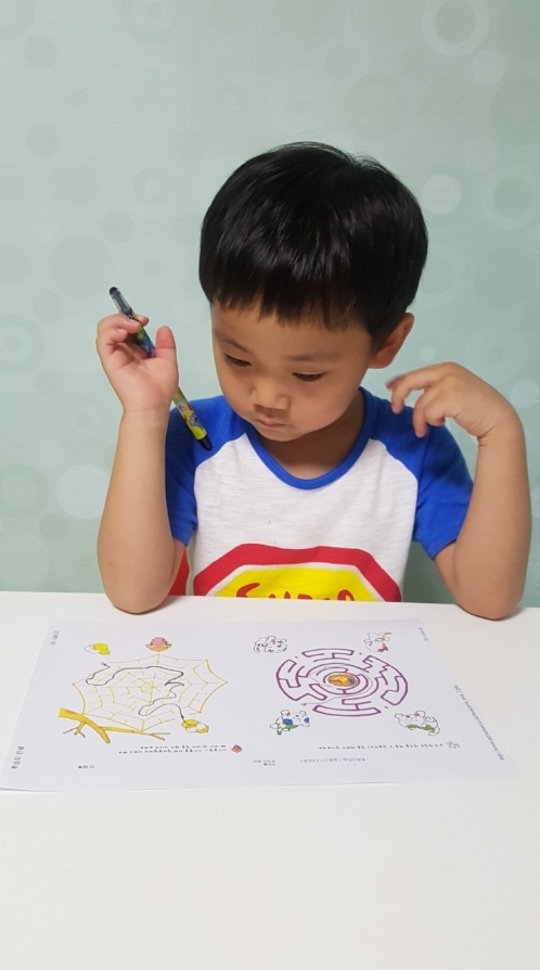 우리 아이는 5살인데 어린이집에 가지 않고 집에서 애니스쿨로 프린트 학습지를 하고 있어요^^