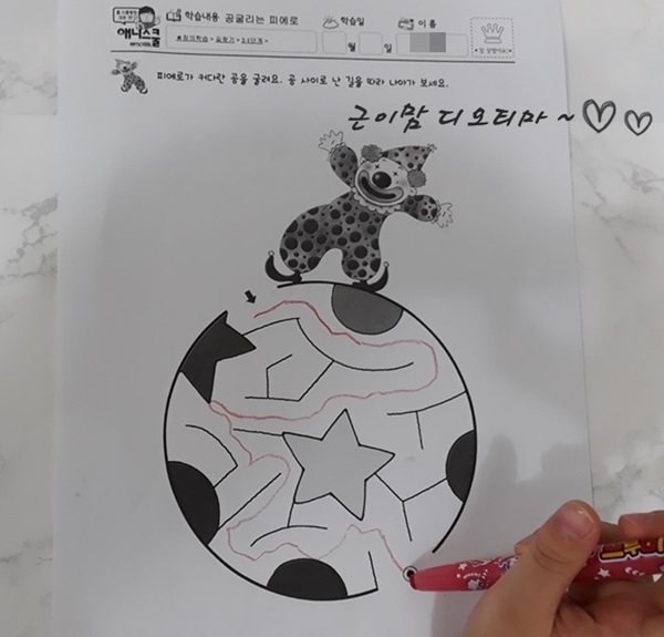 이번 주에는 우리 근이와 애니스쿨 길찾기프린트학습지를 학습했어요~
