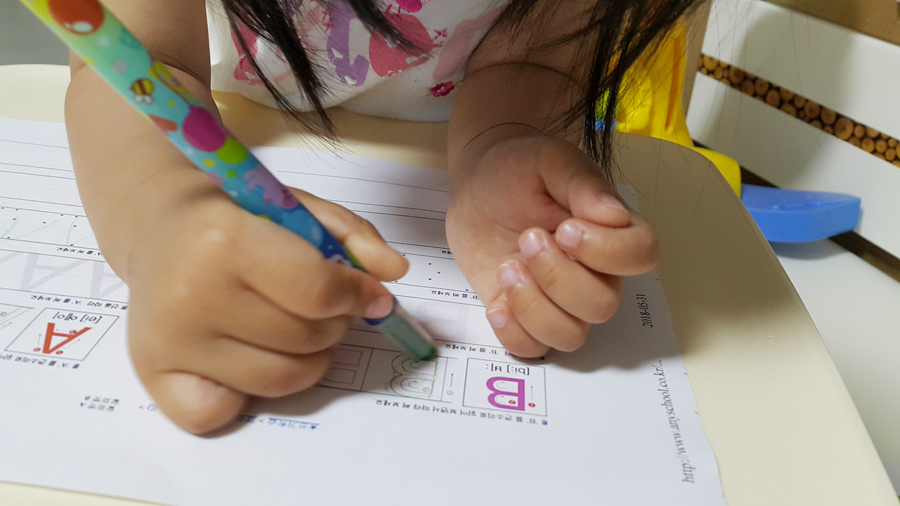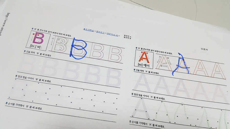 처음엔 알파벳쓰기를 어려워 하더니 몇번 반복하고 나니 알파벳쓰기를 너무 재미있어해요~