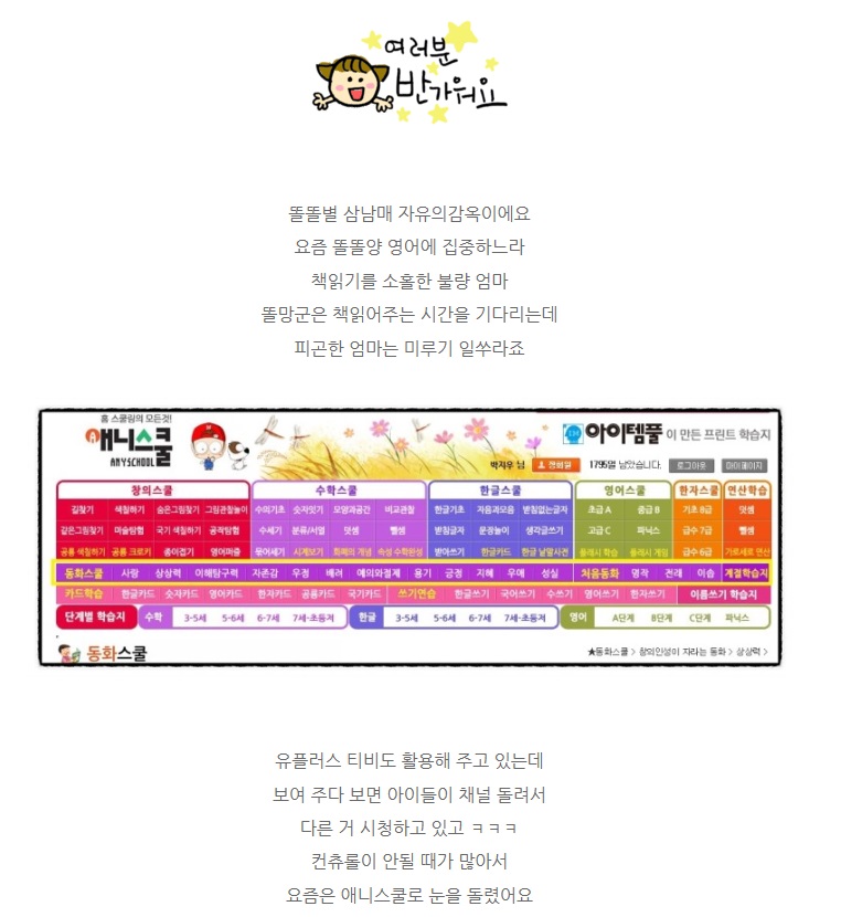 프린트학습지 대표 – 애니스쿨