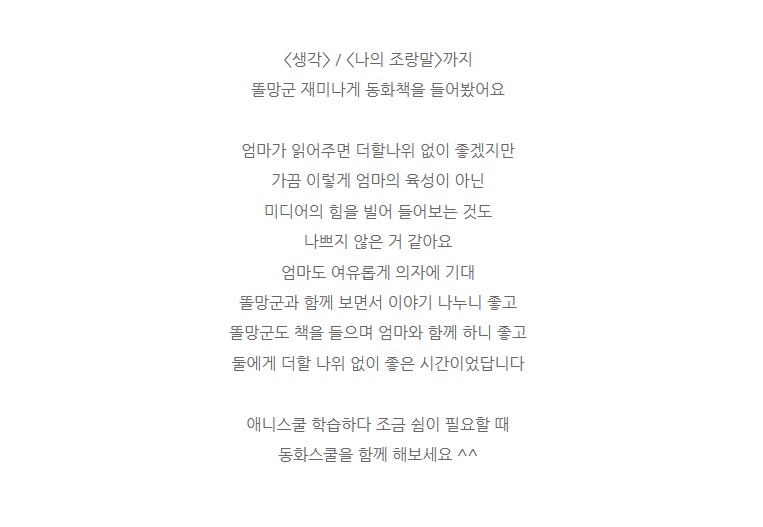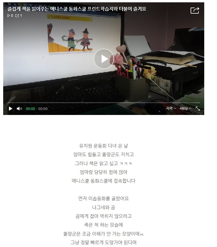 제목 즐겁게 책을 읽어주는 애니스쿨 동화스쿨 프린트학습지와 더불어 즐겨요