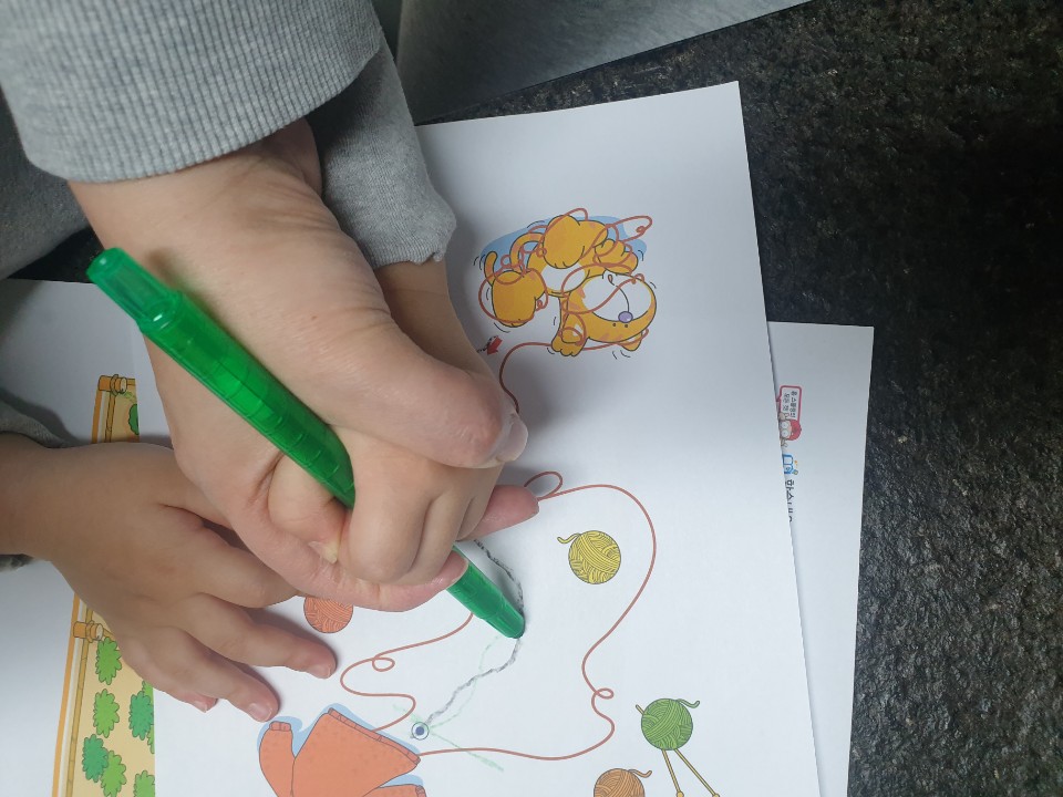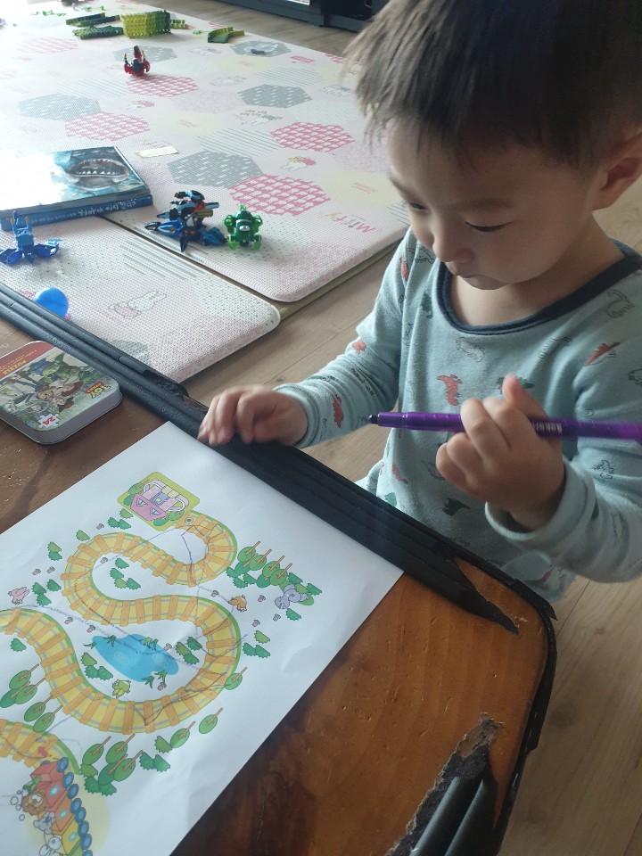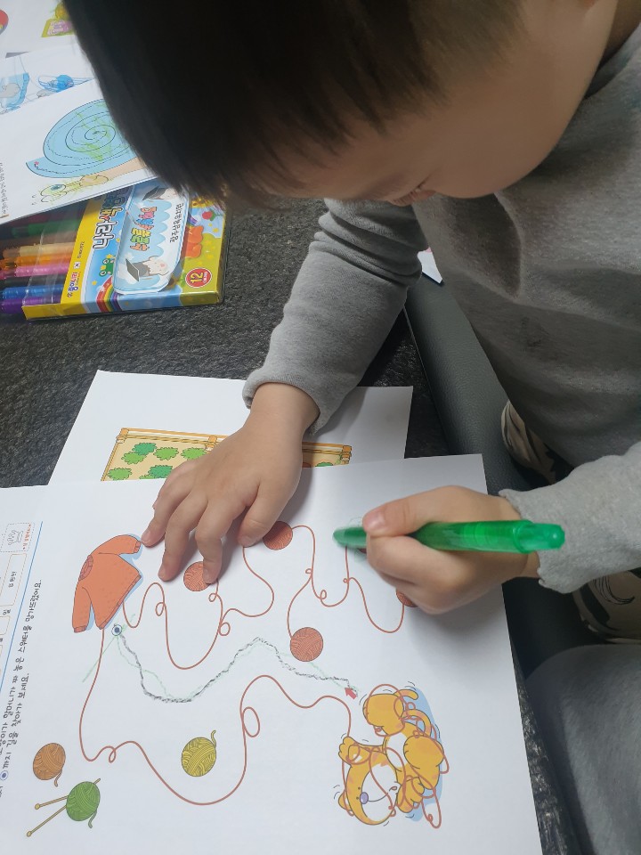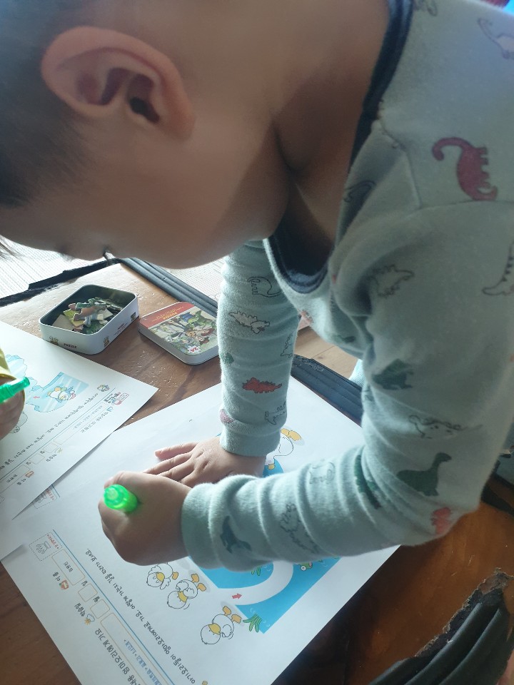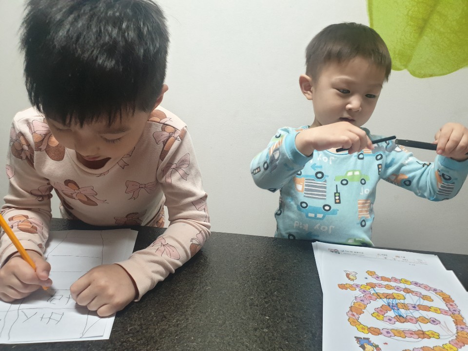 형아 공부할때마다 괴롭히더니 오늘은 자기 프린트가 있으니 그것에 집중에 형아 신경도 안쓰네요~~