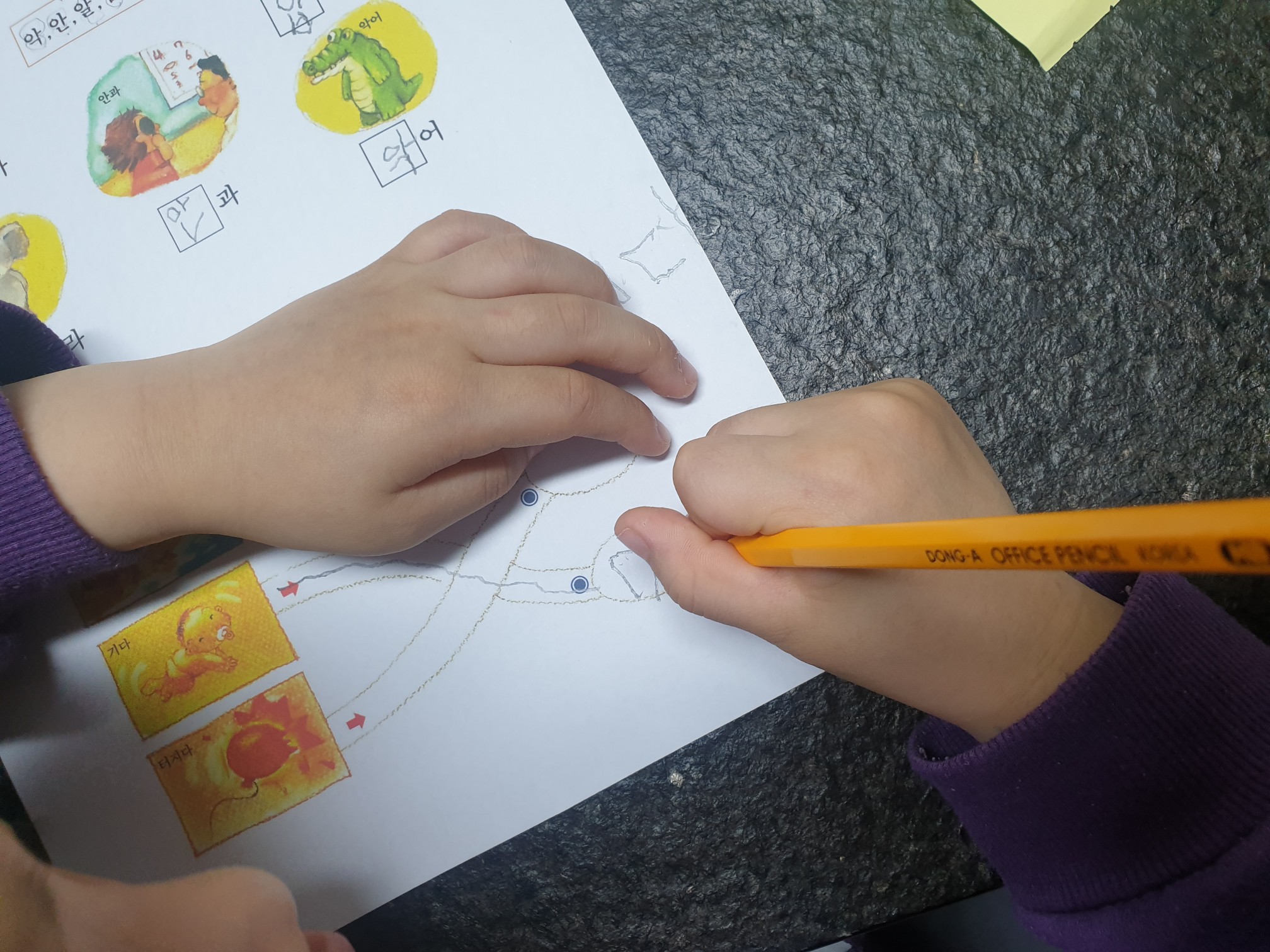 작은빈은 저번에 한 단계를 열심히 다시 따라 그리며