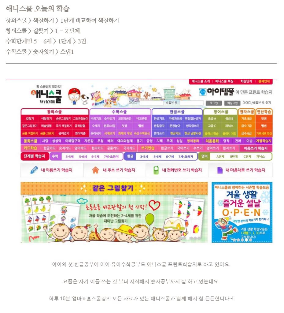제목 유아수학공부도 단계별학습지인 애니스쿨 프린트학습지로 해요! 유아프린트학습지추천~! :)